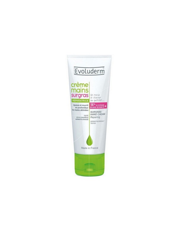 La Crème de Mains Surgras Evoluderm 100ml nourrit intensément, répare et protège les mains sèches ou abîmées grâce à sa formule enrichie en agents surgras. Elle laisse la peau douce, souple et agréablement parfumée.