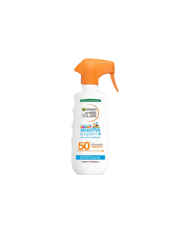 Protection solaire enfant IP50+, spray pistolet pratique, hypoallergénique, résistant à l’eau. Idéal pour la peau sensible des enfants.